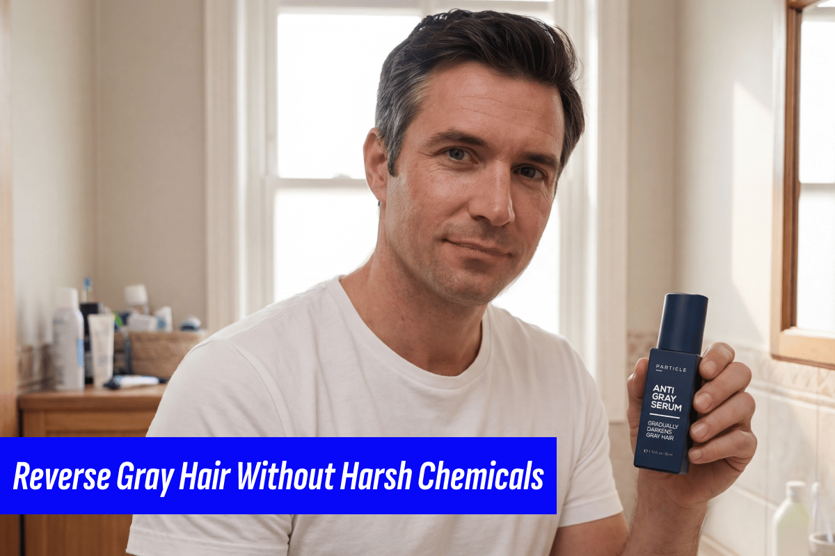 But now there is a third option: Particle Anti-Gray Serum. A daily spray that works at the root to gradually restore your natural color — hair and beard — without dye, without mess, without anyone knowing you're doing anything at all. Premium ingredients. Clinically researched. Thirty-day guarantee. Over 1,000,000 men use Particle because the results look like them.